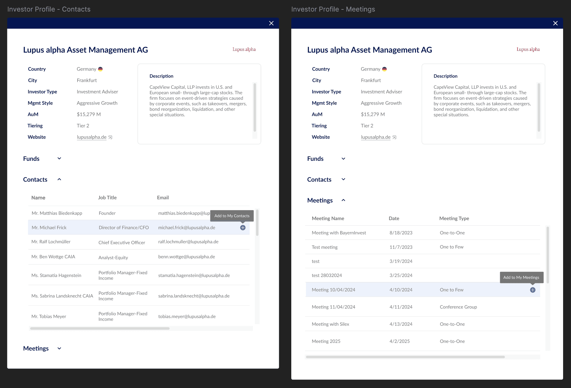 The team wanted to translate the most important aspects of a complex external CRM system to an in-house built feature in the company product.